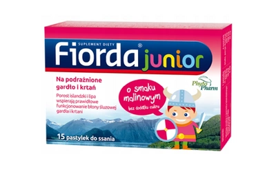 Fiorda Junior pastylki do ssania malinowe na gardło dla dzieci 15 sztuk