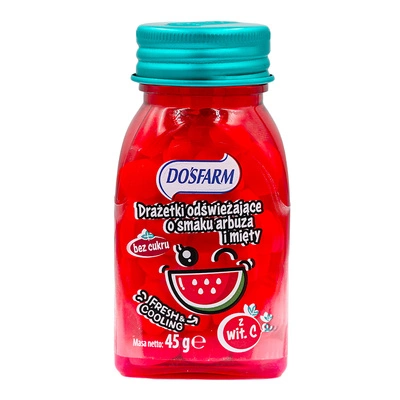 Dosfarm drażetki odświeżające o smaku arbuza i mięty z witaminą C DUŻE OPAKOWANIE 45 g