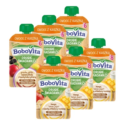 BoboVita gruszki z jogurtem, banany z kruszonką mix ZESTAW 6 x 190 g