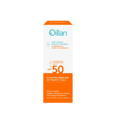 Oillan Ochronna emulsja przeciwsłoneczna do twarzy i ciała z filtrem SPF50 do skóry wrażliwej 100 ml