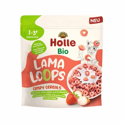 Holle BIO chrupiące płatki zbożowe krążki truskawkowa lama od 1 roku życia 125 g