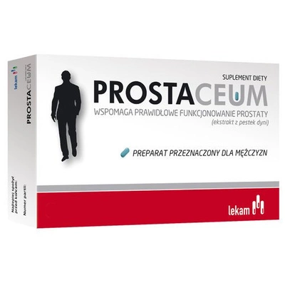 - Prostaceum to suplement diety zawierający ekstrakt z pestek dyni, ziela wierzbownicy, owoców palmy sabałowej, liści pokrzywy i owoców pomidora, wzbogacony w witaminy C i E oraz cynk.