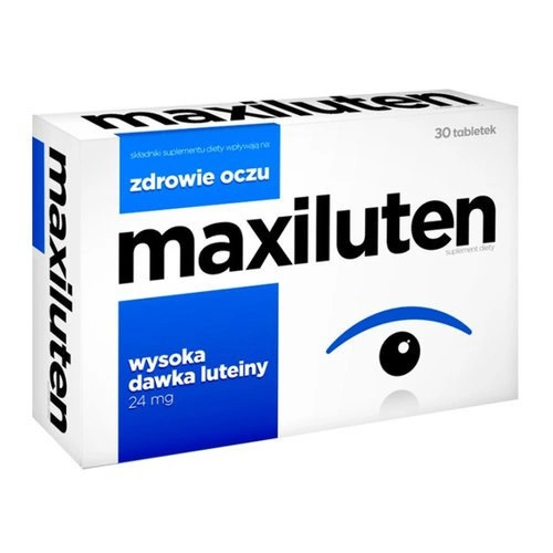 Suplement diety Maxiluten zawiera wysoką ilość luteiny w 1 tabletce. Dodatkowo stanowi źródło witaminy C i cynku oraz witaminy A pochodzącej z beta-karotenu. Cynk, witamina A oraz ekstrakt z płatków róży stulistnej pomagają w utrzymaniu prawidłowego widzenia. Jednocześnie wraz z witaminą C wspomaga prawidłowe działanie układu odpornościowego oraz pomaga w ochronie komórek przed stresem oksydacyjnym.