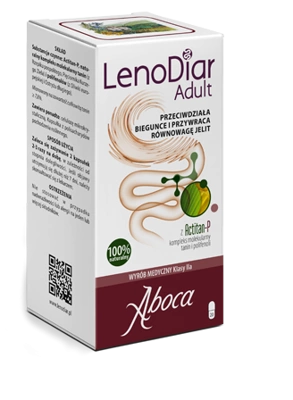 LenoDiar Adult jest innowacyjnym wyrobem medycznym do stosowania w przebiegu ostrej biegunki oraz stanów zaostrzonej, przewlekłej biegunki. Produkt może być stosowany zarówno u osób dorosłych, jak i dzieci powyżej 12 roku życia. Formuła preparatu opiera się na roślinnym kompleksie molekularnym Actitan-P, będącym owocem badań firmy Aboca.