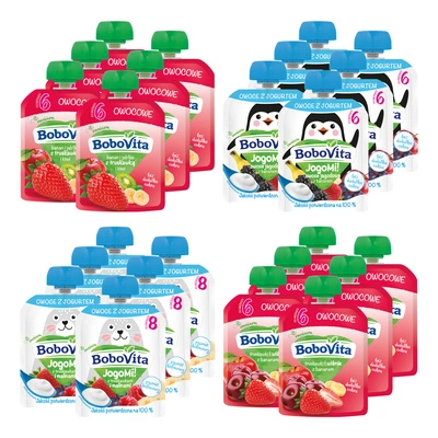 Pyszny, owocowy deserek BoboVita Jogomi! to idealna przekąska dla Twojego dziecka. Produkt zamknięto w poręcznej tubce, w której znajduje się doskonała kompozycja najwyższej jakości owoców oraz kremowego jogurtu, która zasmakuje, każdemu maluchowi. Deserek Bobovita to idealne pomysł na posiłek poza domem, doskonale sprawdzi się podczas spaceru czy podróży. Owoce w tubkach BoboVita pochodzą ze starannie wybranych, skontrolowanych pól i sadów, a najwyższej jakości mleko wyłącznie od zaufanych dostawców. Wszystkie produkty BoboVita spełniają rygorystyczne normy jakościowe żywności dla najmłodszych. Smakołyk został stworzony dla dzieci po 8 miesiącu życia. Sprawdź inne smaki przekąsek dostępne na naszej stronie.