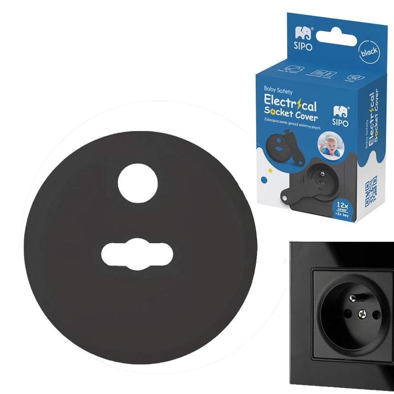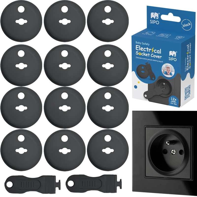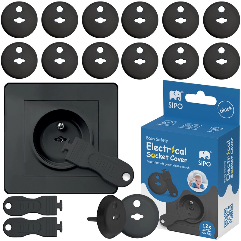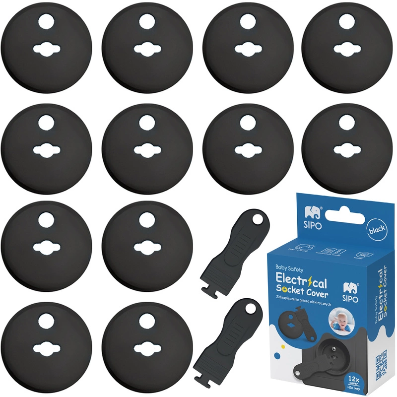 SIPO Zestaw zabezpieczeń kontaktów zaślepki gniazd elektrycznych czarne 12 sztuk