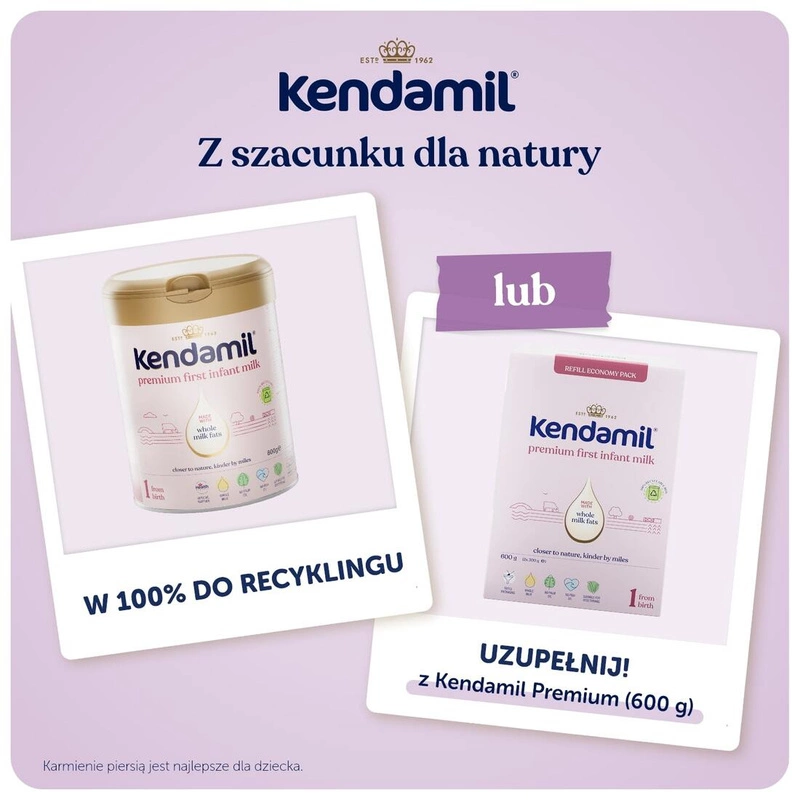 - Mleko Początkowe Premium 1 DHA+, Kendamil to nowa udoskonalona formuła i idealne zestawienie niezbędnych składników, pochodzących wyłącznie ze sprawdzonych źródeł.