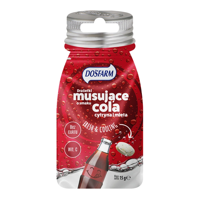 Dosfarm drażetki musujące o smaku coli, cytryny i mięty z witaminą C 15 g