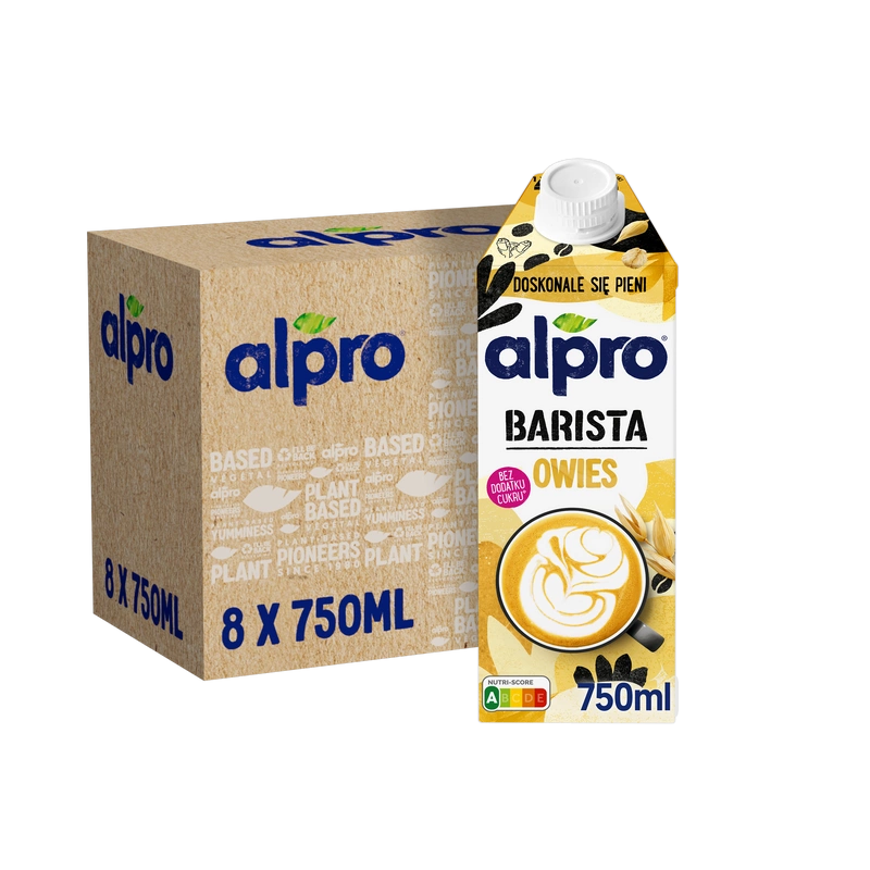 Latte, a może mrożona? Alpro Barista Owsiane genialnie sprawdzi się jako dodatek do Twojej ulubionej kawy. Delikatny i harmonijny smak owsa, kremowa konsystencja i doskonała pianka, idealna do tworzenia latte art. A to wszystko bez dodatku cukru*! 100 % europejski owie Nasz owies pozyskujemy tylko z europejskich upraw. Źródło błonnika i witamin B2, D2. Bez dodatku cukru.*