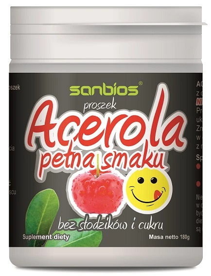 SANBIOS acerola pełna smaku bez słodzika i cukru w proszku 180 g