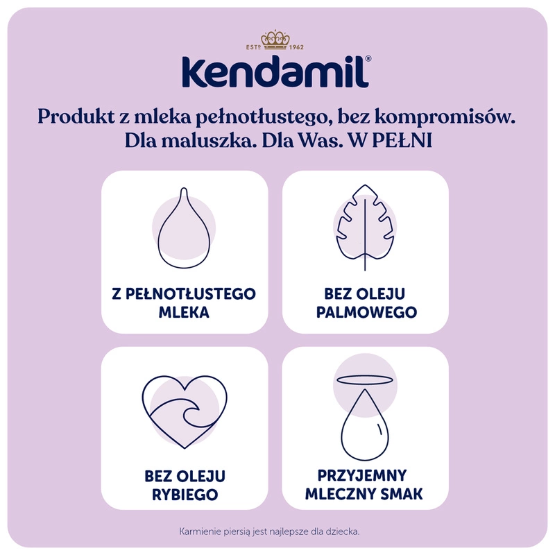 pełnotłustej mlecznej formule Kendamil ma również przyjemny mleczny smak, który dzieci pokochają.