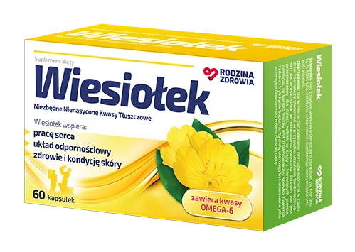 Rodzina Zdrowia Wiesiołek to suplement diety zawierający olej z nasion wiesiołka dziwnego Oenothera paradoxa bogaty w Niezbędne Nienasycone Kwasy Tłuszczowe (NNKT) z rodziny omega-6: kwas linolowy (LA) i kwas gamma-linolenowy (GLA). NNKT odgrywają ważna rolę w wielu procesach fizjologicznych, takich jak metabolizm cholesterolu, pomagają w utrzymaniu zdrowia serca i naczyń krwionośnych, wspierają prawidłowe funkcjonowanie układu odpornościowego i korzystnie wpływają na zdrowie i kondycję skóry. Kwas linolowy (LA) pomaga w utrzymaniu prawidłowego poziomu cholesterolu we krwi - korzystne działanie występuje w przypadku spożywania 10 g LA dziennie.