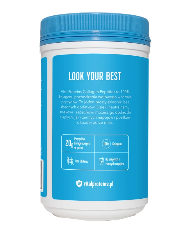 Vital Proteins Collagen Peptides to 100 % kolagenu pochodzenia wołowego, bez dodatków i konserwantów. Wyprodukowany ze składników najwyższej jakości, bez użycia środków chemicznych**. Brak smaku i zapachu pozwala na wykorzystanie kolagenu w proszku, jako dodatku do ciepłych, jak i zimnych napojów i dań.