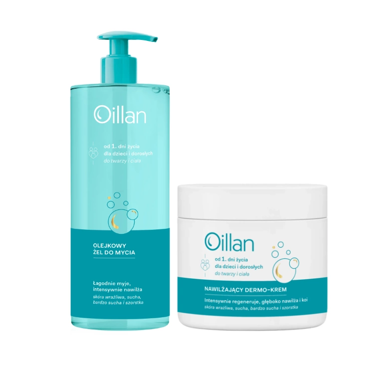 Zestaw do pielęgnacji ciała OILLAN - Nawilżający Dermo-krem 500 ml + Olejkowy żel do mycia 750 ml