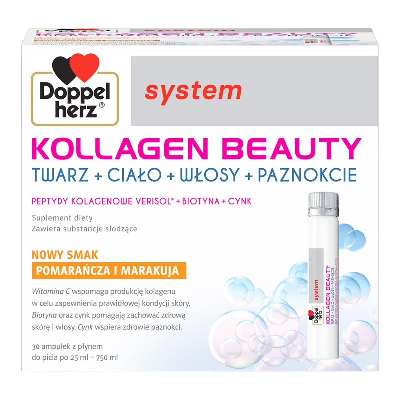 - Doppelherz system KOLLAGEN BEAUTY smak POMARAŃCZA I MARAKUJA 30 ampułek po 25 ml
