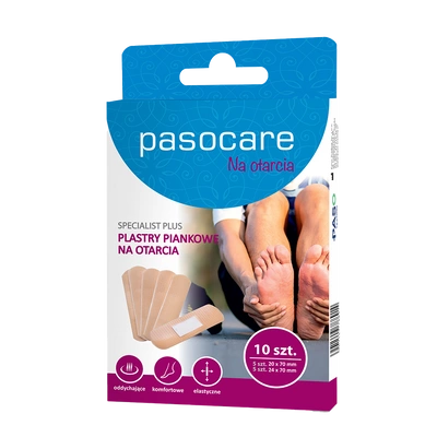 Pasocare zestaw piankowych plastrów NA OTARCIA z opatrunkiem 10 sztuk