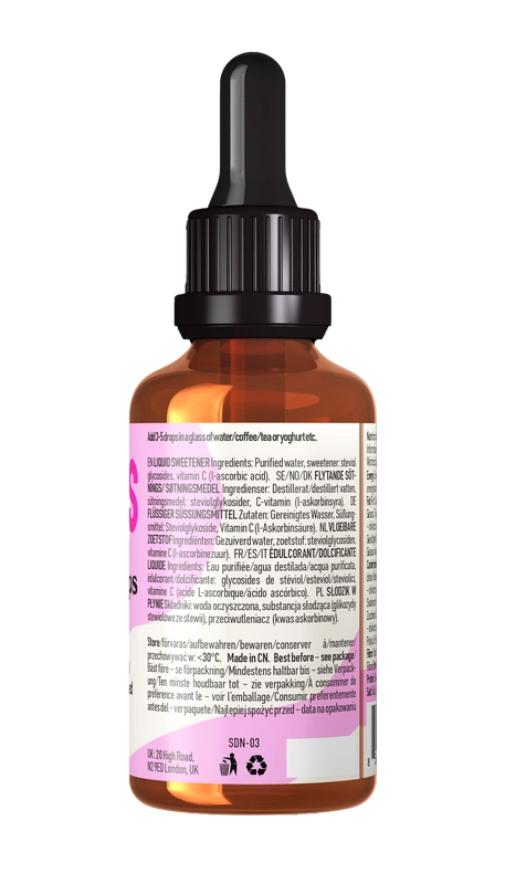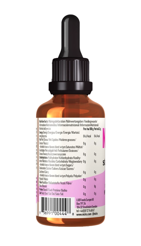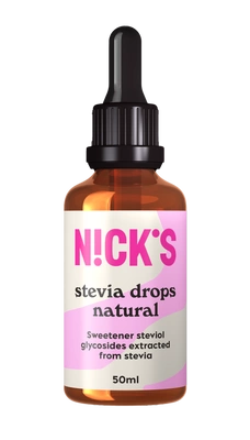 NICK'S Stevia Drops NATURAL to słodzony stewią aromat spożywczy o smaku i zapachu naturalnym. Nie zawiera dodatku cukru i dostarcza dokładnie zero kalorii! Stanowi świetny dodatek do posiłków na słodko, np. owsianek, omletów, domowych lodów i deserów, wypieków takich jak ciasta i ciasteczka, a także napojów, np. kawy lub herbaty. NICK'S Stevia Drops NATURAL to produkt pozwalający na urozmaicenie diety i wzbogacenie smaku potraw.
