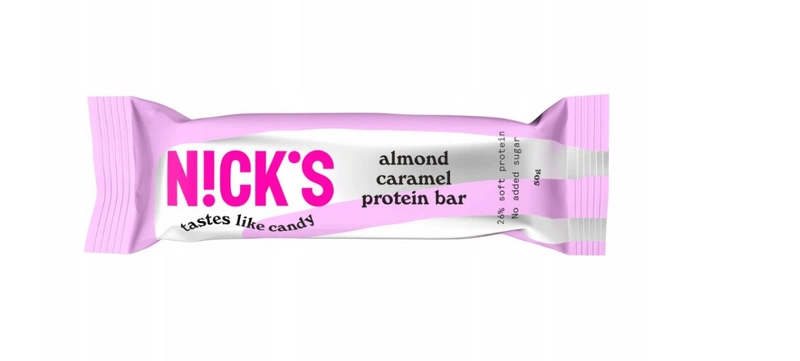 NICK'S Protein Bar Almond Caramel to przepyszny, proteinowy baton wypełniony masą białkową, solidną porcją ciągnącego, intensywnie słodkiego karmelu i chrupiącymi migdałami w polewie z aksamitnej, mlecznej czekolady. Prawdziwa rozkosz dla podniebienia! Baton zadowoli nawet największych fanów słodyczy z cukrem - Protein Bar Almond Caramel to gwarancja wyrazistości smaku, znakomicie wyważonej słodyczy i rozpływającej się w ustach konsystencji. Jego smak nie odbiega, a wręcz śmiało może rywalizować ze słodyczami z dodatkiem cukru dostępnymi na rynku. Masz ochotę na coś słodkiego? Sięgnij po Nick's Protein Bar, który uzależnia już od pierwszego kęsa! Dostępny jest w aż 10 wersjach smakowych.