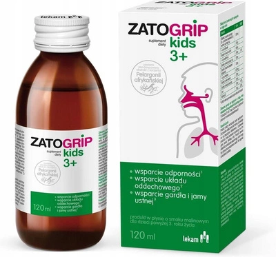 - Suplement diety ZatoGrip Kids 3+ to podwójna siła dzięki połączeniu ekstraktów roślinnych z korzenia pelargonii afrykańskiej oraz owoców czarnego bzu.