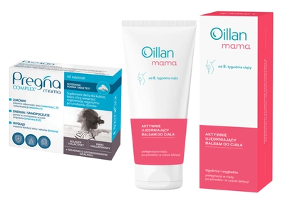 Pregna COMPLEX Mama witaminy dla mam 60 tabletek i Oillan balsam do ciała 200 ml