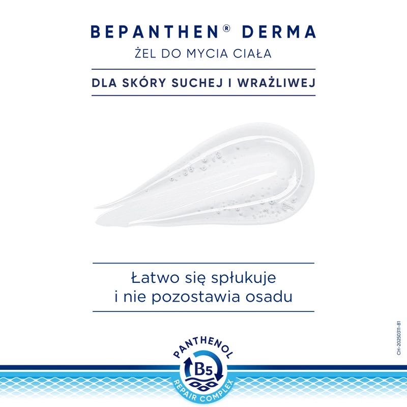 - Bepanthen® Derma żel do mycia ciała został opracowany specjalnie do oczyszczania suchej i wrażliwej skóry, dla całej rodziny.