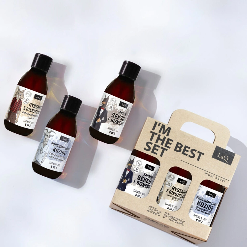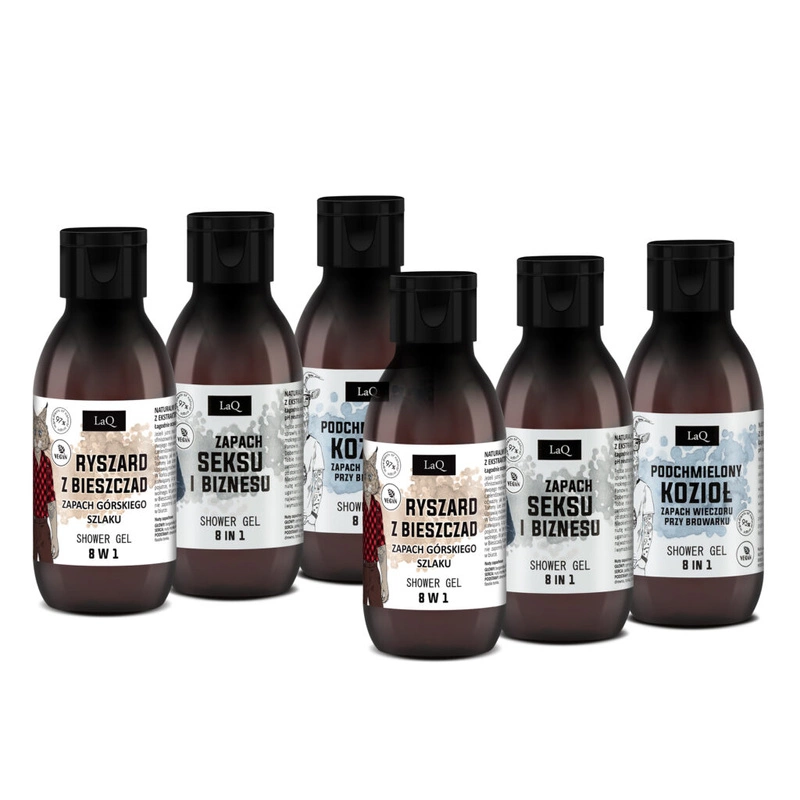 LaQ zestaw prezentowy MINI żele pod prysznic DOBERMAN, RYŚ, KOZOIOŁ 6 x 100 ml