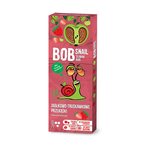 Bob Snail Rollsy Bob Snail to przekąska w 100% zrobiona z owoców. W składzie znajdziecie tylko owoce — i nic więcej! Są uwielbiane przez dzieci i dorosłych – bo pysznie smakują, są zdrowe, mają ciekawy kształt i można je zawsze mieć przy sobie – w szkole, w pracy, w podróży i na spacerze. Podaruj sobie chwilę owocowej przyjemności w słodkim, pełnym słońca smaku.