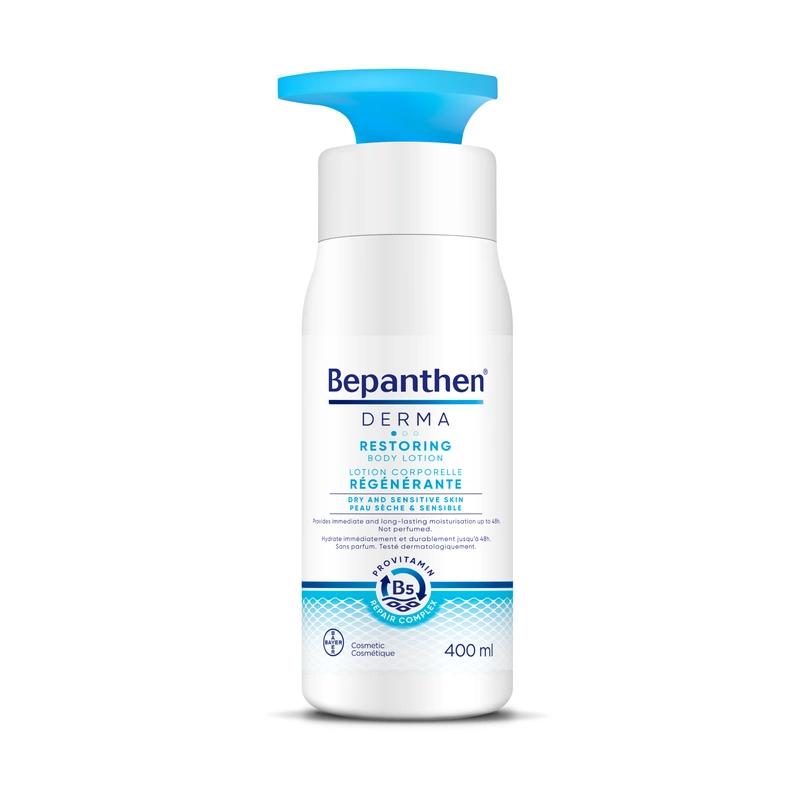 Bepanthen® Derma nawilżający i odżywczy balsam do ciała 400 ml pielęgnuje suchą i wrażliwą skórę, zapewniając jej natychmiastową ulgę i długotrwałą ochronę. Nawilżenie nawet do 48 godzin. Odpowiedni dla całej rodziny.