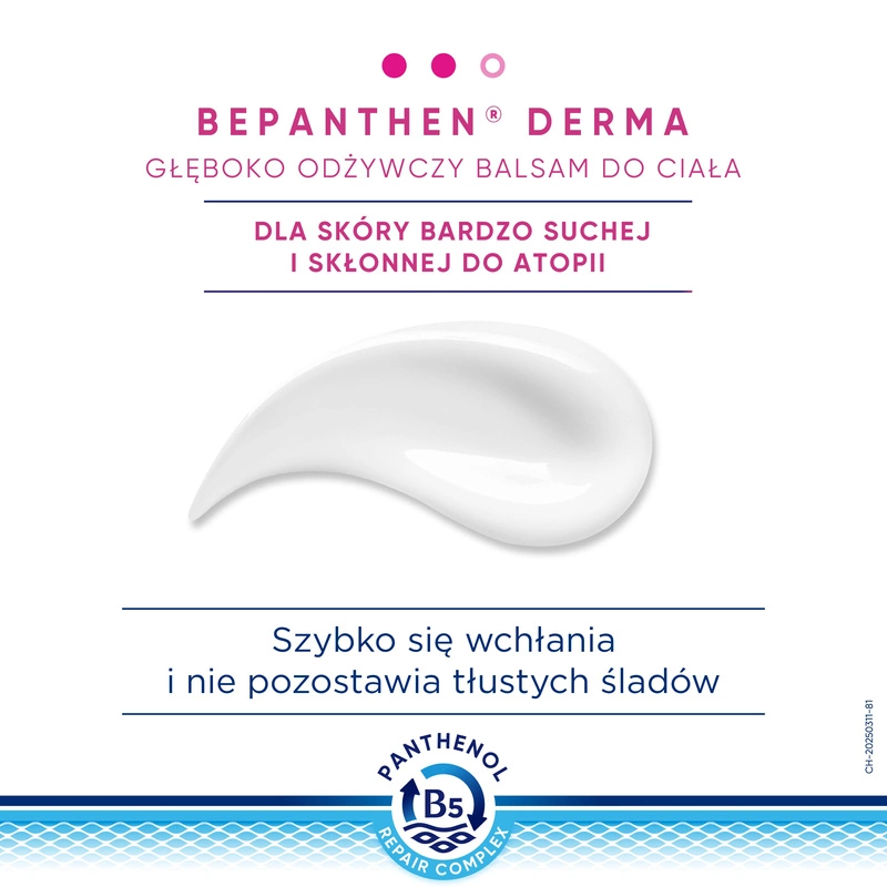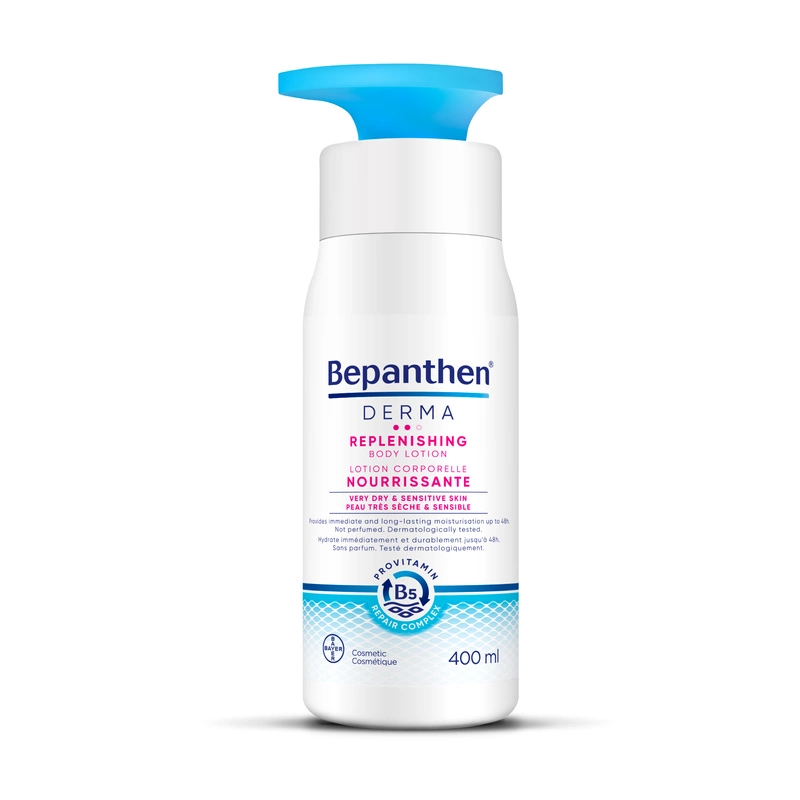 Bepanthen® Derma głęboko odżywczy balsam do ciała 400 ml pielęgnuje bardzo, wrażliwą i skłonną do atopii skórę. Natychmiastowo koi i długotrwale nawilża, zmiękcza i wygładza skórę, nawet do 48 godzin. Skóra staje się rozświetlona, promienna i aksamitnie gładka.