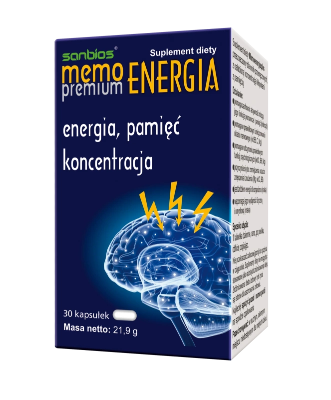 - Memoenergia PREMIUM to produkt przeznaczony dla osób przemęczonych, z osłabioną koncentracją i kłopotami z pamięcią.