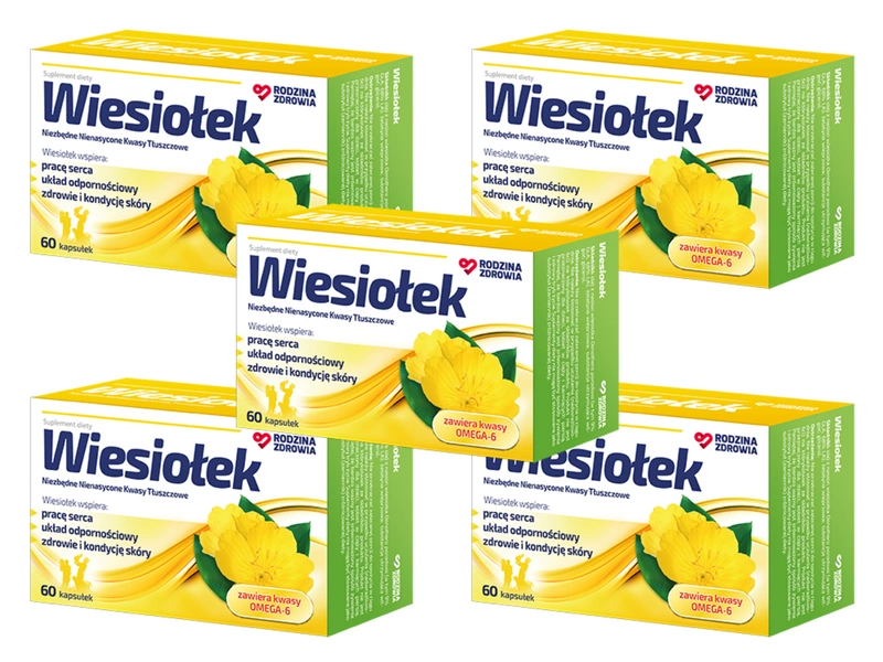 Rodzina Zdrowia Wiesiołek to suplement diety zawierający olej z nasion wiesiołka dziwnego Oenothera paradoxa bogaty w Niezbędne Nienasycone Kwasy Tłuszczowe (NNKT) z rodziny omega-6: kwas linolowy (LA) i kwas gamma-linolenowy (GLA). NNKT odgrywają ważna rolę w wielu procesach fizjologicznych, takich jak metabolizm cholesterolu, pomagają w utrzymaniu zdrowia serca i naczyń krwionośnych, wspierają prawidłowe funkcjonowanie układu odpornościowego i korzystnie wpływają na zdrowie i kondycję skóry. Kwas linolowy (LA) pomaga w utrzymaniu prawidłowego poziomu cholesterolu we krwi - korzystne działanie występuje w przypadku spożywania 10 g LA dziennie.
