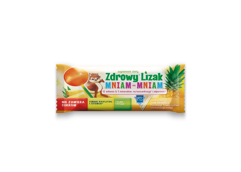 Zdrowy lizak dla dzieci mniam mniam z witaminami smak ananasowy KULKA 1 sztuka