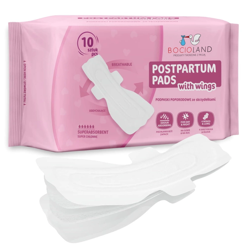 Bocioland wysokochłonne podkłady poporodowe ze skrzydełkami na dzień i noc 10 sztuk