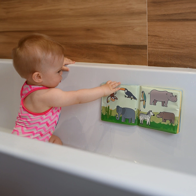 Książeczka jest bezpieczna dla dziecka, pobudza spostrzegawczość, małą motorykę, pamięć, koncentrację i chęć odkrywania. Wykonana jest z miłego w dotyku, miękkiego a zarazem wytrzymałego i wodoodpornego materiału.