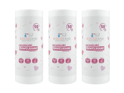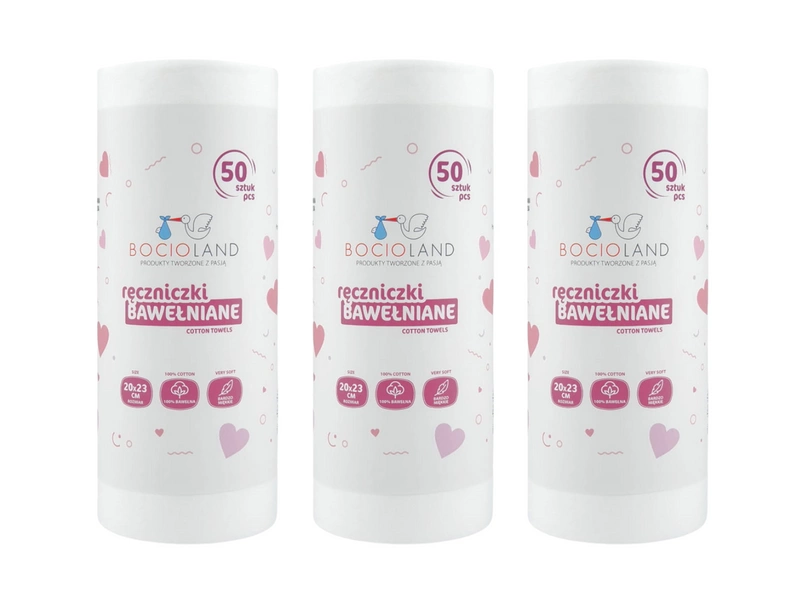 Bocioland miękkie i delikatne ręczniki bawełniane na rolce 20 x 23 cm ZESTAW 3 x 50 sztuk