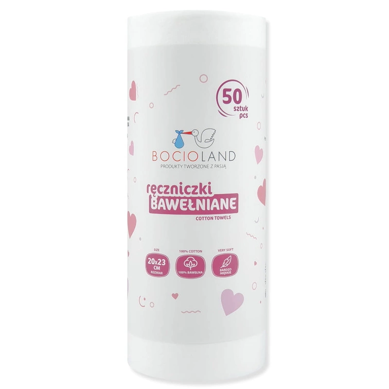 Bocioland miękkie i delikatne ręczniki bawełniane na rolce 20 x 23 cm 50 sztuk