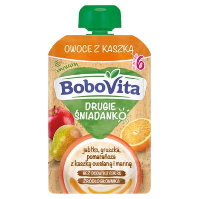 BoboVita Drugie Śniadanko Owoce z kaszką jabłko gruszka pomarańcza po 6 miesiącu 100 g