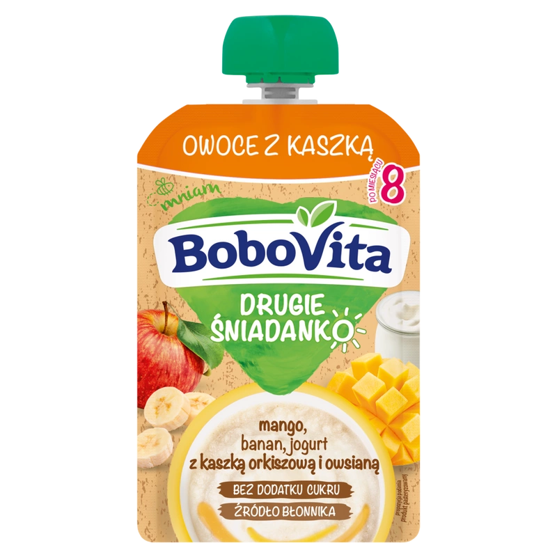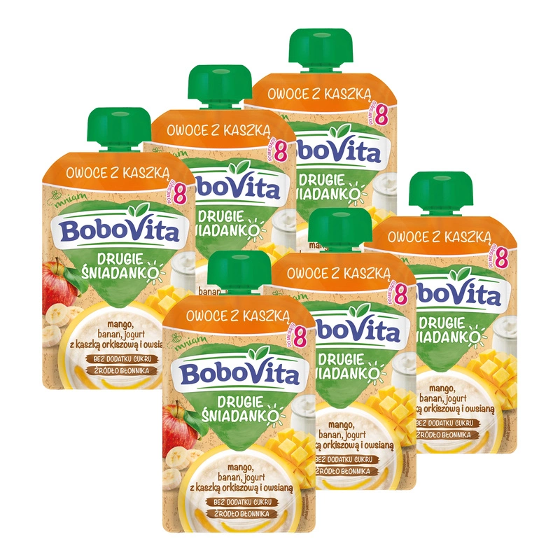 BoboVita Drugie Śniadanko Owoce z kaszką mango banan jogurt po 8 miesiącu ZESTAW 6 x 100 g