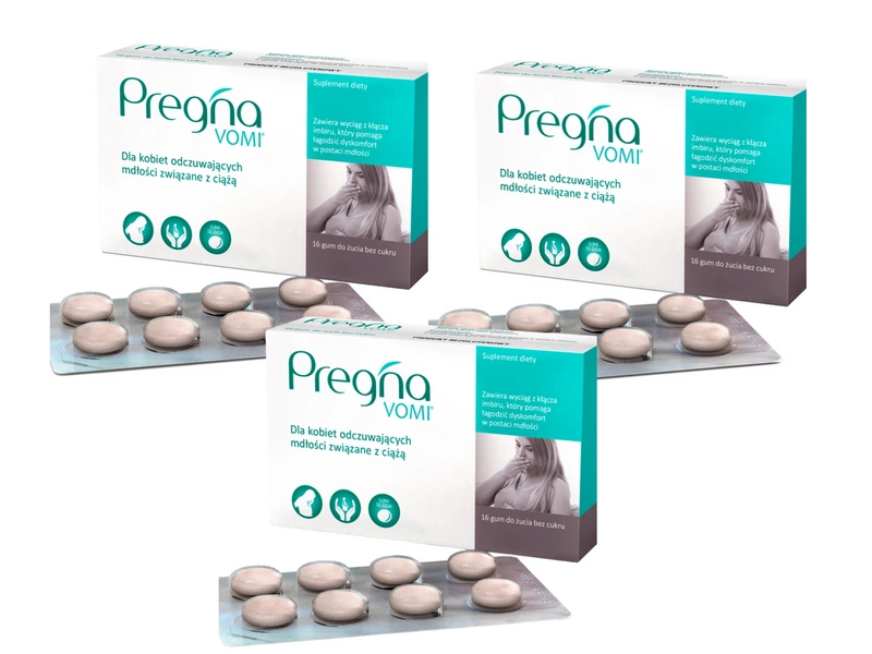 Pregna VOMI Guma do żucia redukująca dyskomfort spowodowany mdłościami ZESTAW 3 x 16 sztuk
