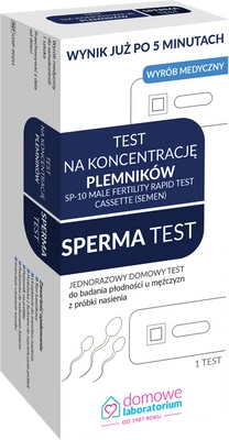 Przeznaczenie testu: Test do badania płodności u mężczyzn to szybki chromatograficzny test immunologiczny do diagnostyki in vitro do jakościowego wykrywania białka akrosomalnego SP-10 znajdującego się w plemnikach w celu oszacowania stężenia plemników w ludzkim nasieniu powyżej lub poniżej 15 mln/ml. Informacje o stężeniu plemników są ważne przy diagnozowaniu niepłodności u mężczyzn, pozwalają ocenić efekty leczenia i wspierają pary w planowaniu rodziny.