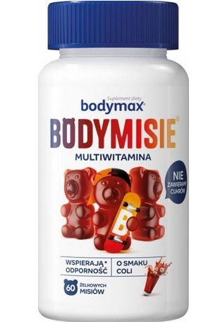Bodymax Bodymisie to suplement diety w postaci żelków w kształcie misiów o owocowych smakach. Został opracowany z myślą o uzupełnianiu codziennej diety dzieci od 3 roku życia i osób dorosłych w 9 witamin: A, E, C, D oraz witaminy z grupy B: niacynę, biotynę, B6, B12 i kwas foliowy.