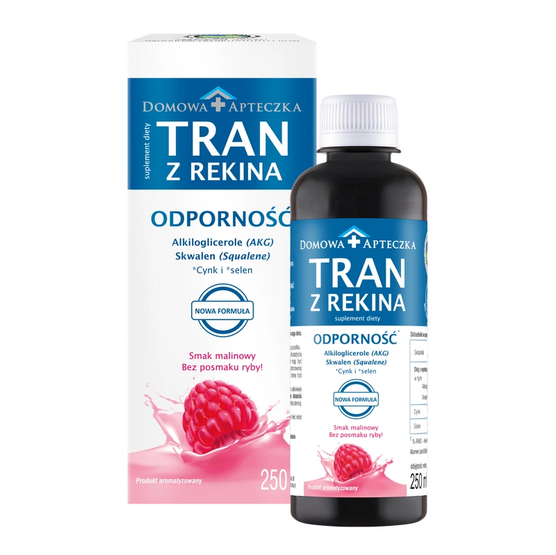 Tran z rekina smak malinowy ODPORNOŚĆ, bez cukru 250 ml