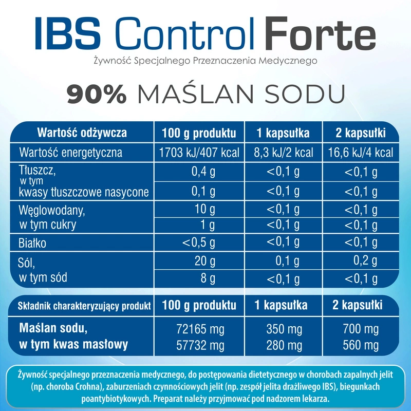 - IBS CONTROL FORTE to innowacyjny produkt stworzony, aby wspierać regenerację i prawidłowe działanie układu pokarmowego.