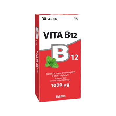 Vita B12 1000 mcg Witamina B o smaku miętowym 30 tabletek do ssania
