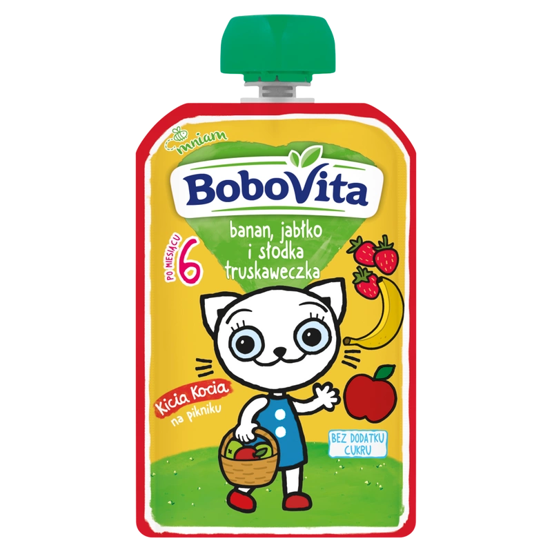 Bobovita to gwarancja jakości i bezpieczeństwa. Owoce w naszych musach pochodzą z wyselekcjonowanych, skontrolowanych upraw, a produkty spełniają rygorystyczne normy jakości żywności dla niemowląt i dzieci do lat 3, ale są tak pyszne, że sięgają po nie chętnie również starszaki! Zabierz owocowy mus z Kicią Kocią na spacer, na piknik, plac zabaw, plażę lub rower.