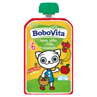 BoboVita Mus banan jabłko i słodka truskaweczka KICIA KOCIA po 6 miesiącu 100 g