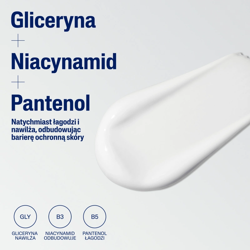 - Formuła z wykorzystaniem naukowo opracowanego połączenia niacynamidu (witamina B3), pantenolu (prowitamina B5) i nawilżającej gliceryny* w jednej recepturze dla skutecznej pielęgnacji skóry wrażliwej.