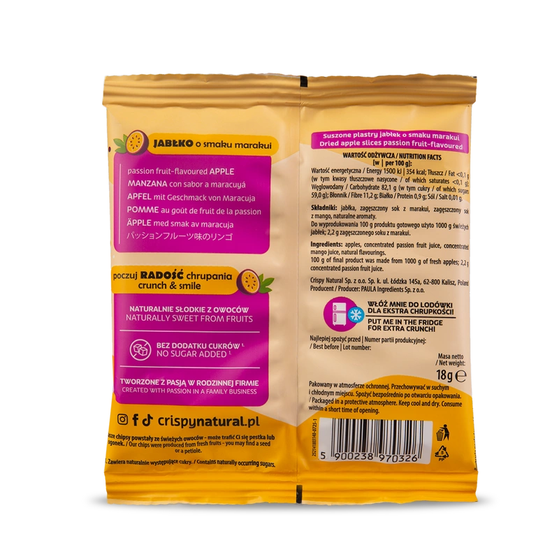 Crispy Natural jabłko o smaku marakui - suszone kostki z jabłek ZESTAW 4 x 18 g