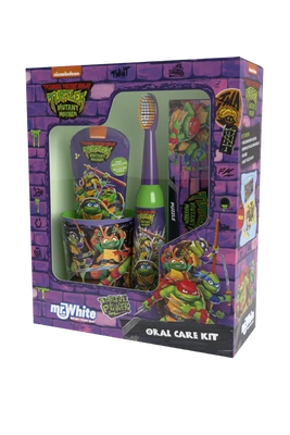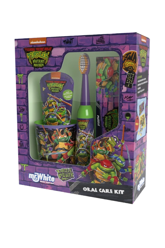 Mr.White Zestaw prezentowy do mycia zębów dla dzieci Ninja Turtles 3+ szczoteczka elektryczna kubek pasta puzzle