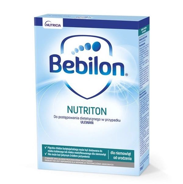w postaci płynnej: dodać Bebilon Nutriton do mleka lub innego pokarmu płynnego w ilości zgodnej z tabelą zamieszczoną na opakowaniu Bebilonu. Natychmiast podać do spożycia.